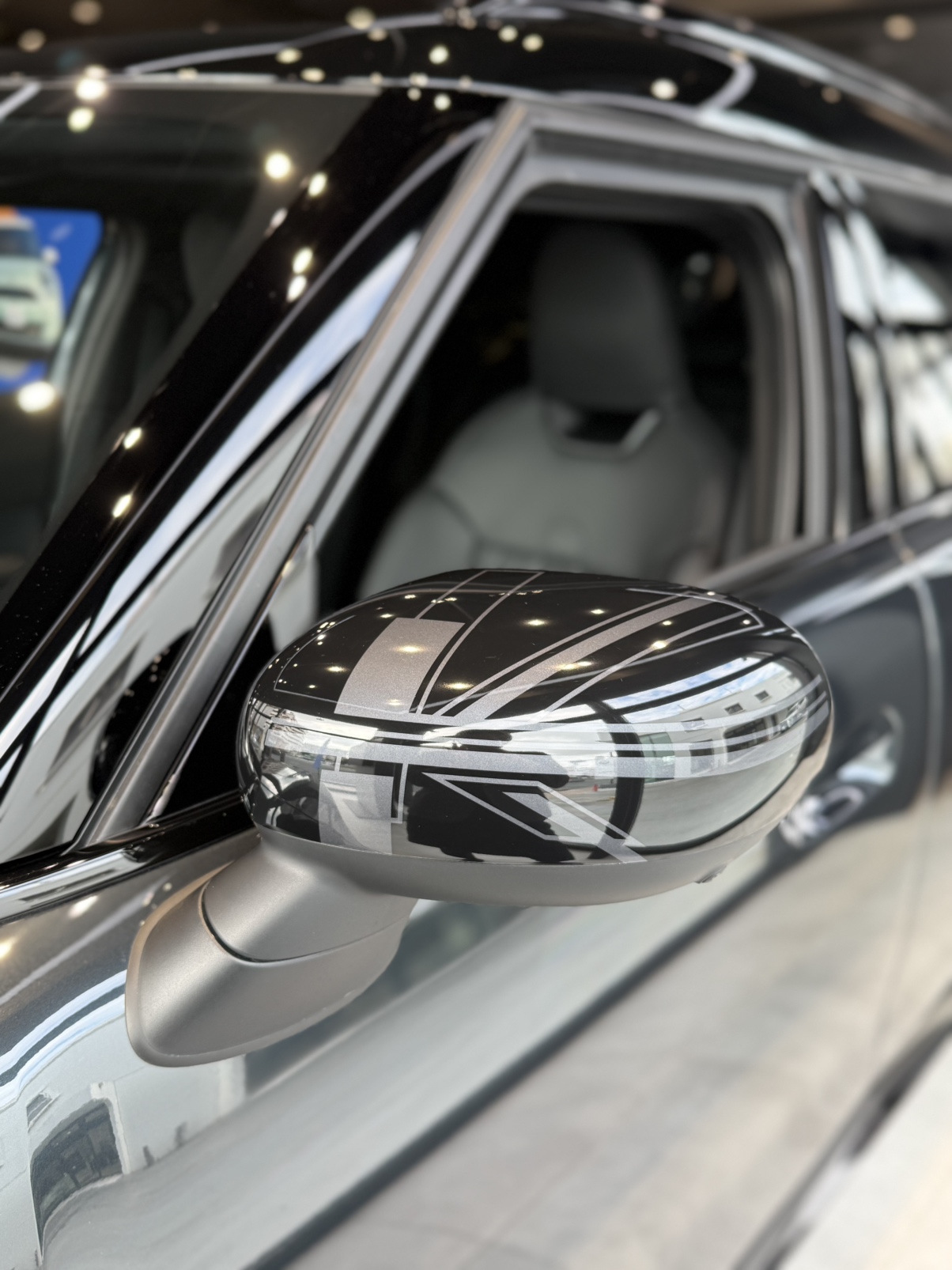 黒とグレーのユニオンジャックがさりげないアクセントになるミラーキャップでMINI感をプラス!